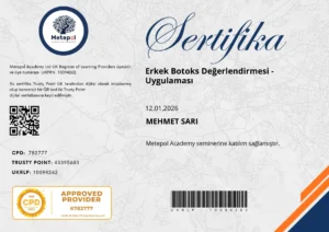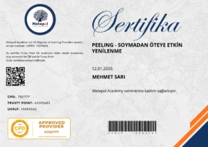 Resmi Yetkinlik: 05.12.2025 tescil tarihli ve 235748 tescil numaralı bu belge, Tabip Mehmet SARI’nın medikal estetik alanındaki yasal uygulama yetkisini ve uzmanlığını akademik düzeyde kanıtlar.